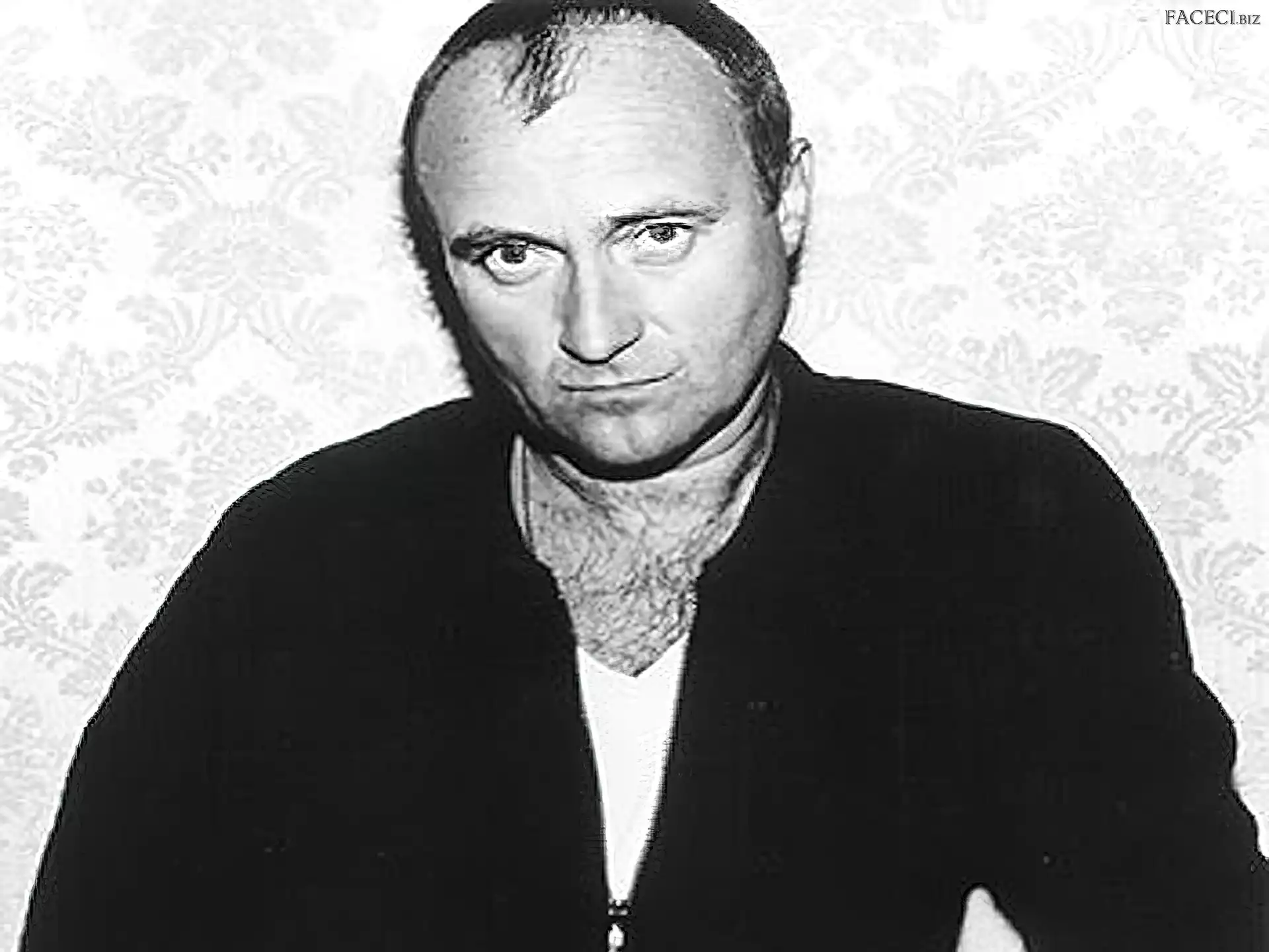 Twarz, Phil Collins Oczy, Phil Collins Philip David Charles Collins Gwiazda, Phil Collins Mikrofon, Phil Collins Mikrofon, Phil Collins Podkoszulek, Phil Collins, Biały Philip David Charles Collins